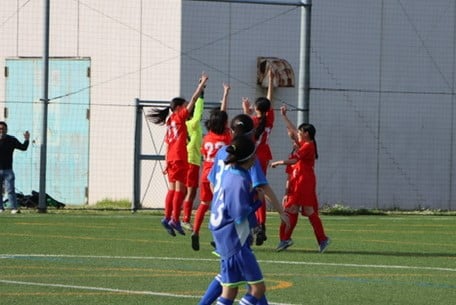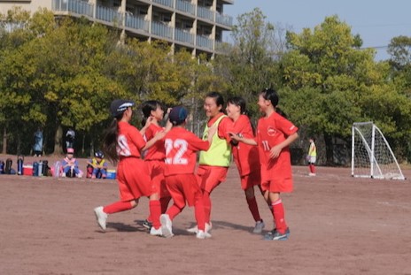 強風の中、元気いっぱいにピッチを駆け回りましたが、ゴールは奪えず予選敗退と