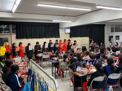 午後は室内で5年生の進行・余興で笑いあり・涙あり盛大に!