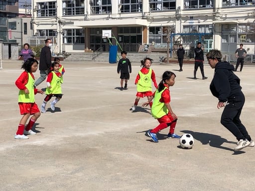 声を掛け合いすっかりチームに溶け込みサッカーを楽しんでいました。